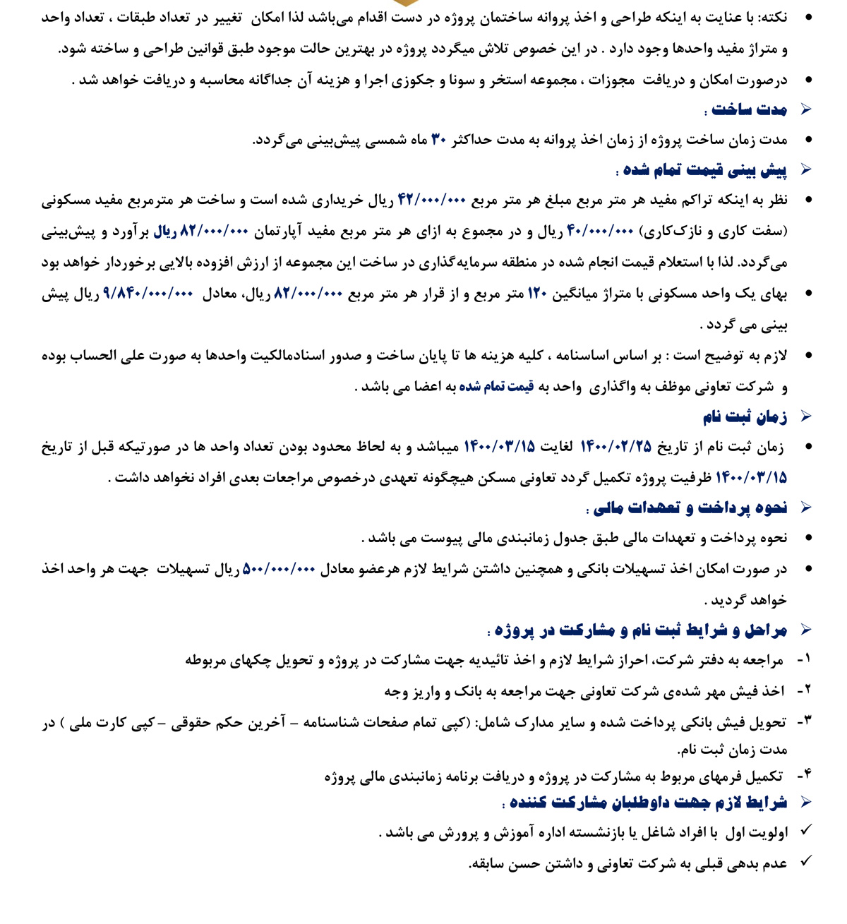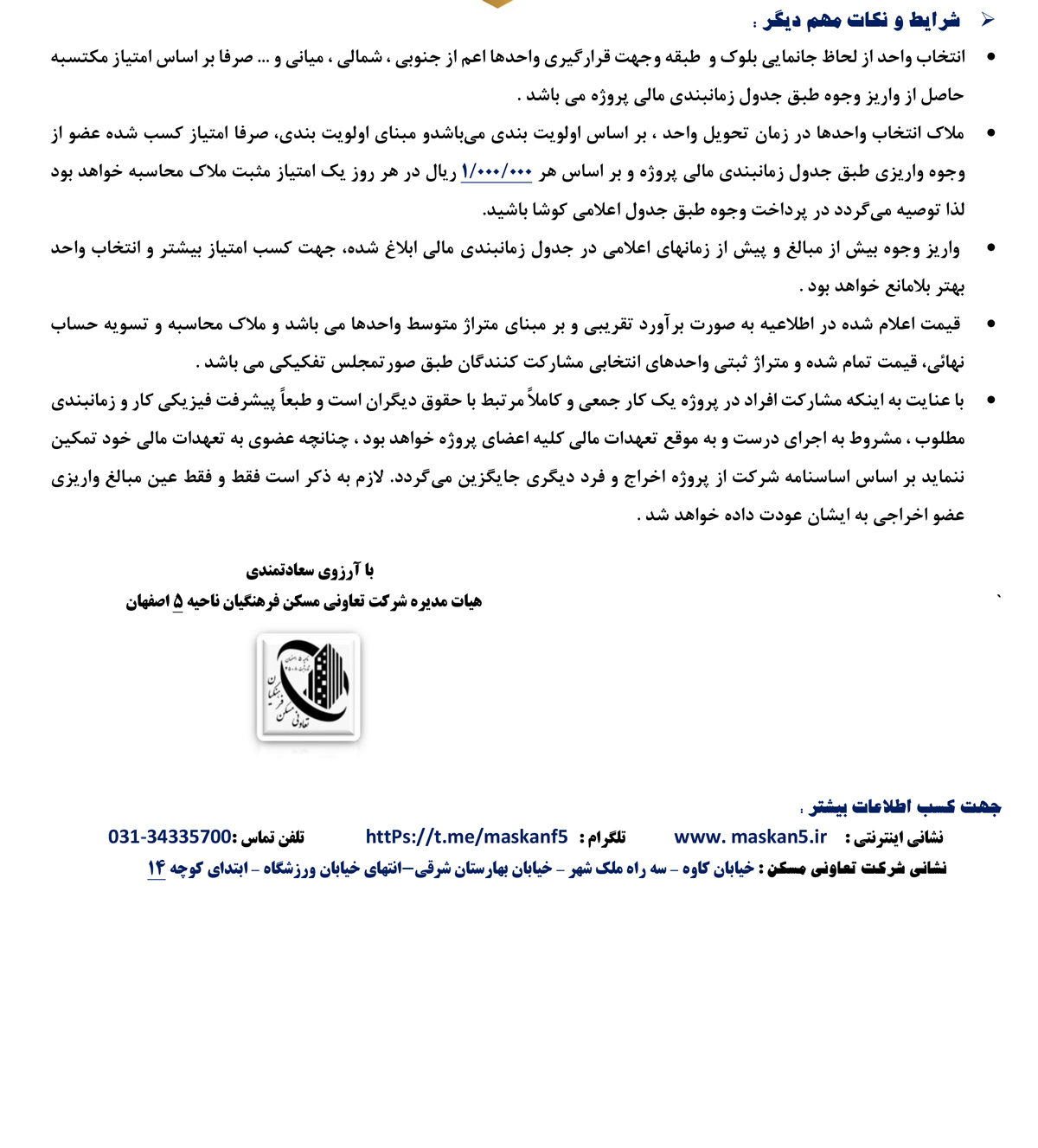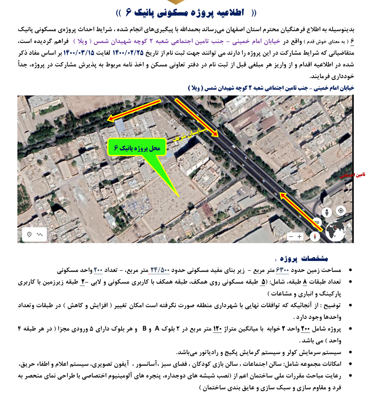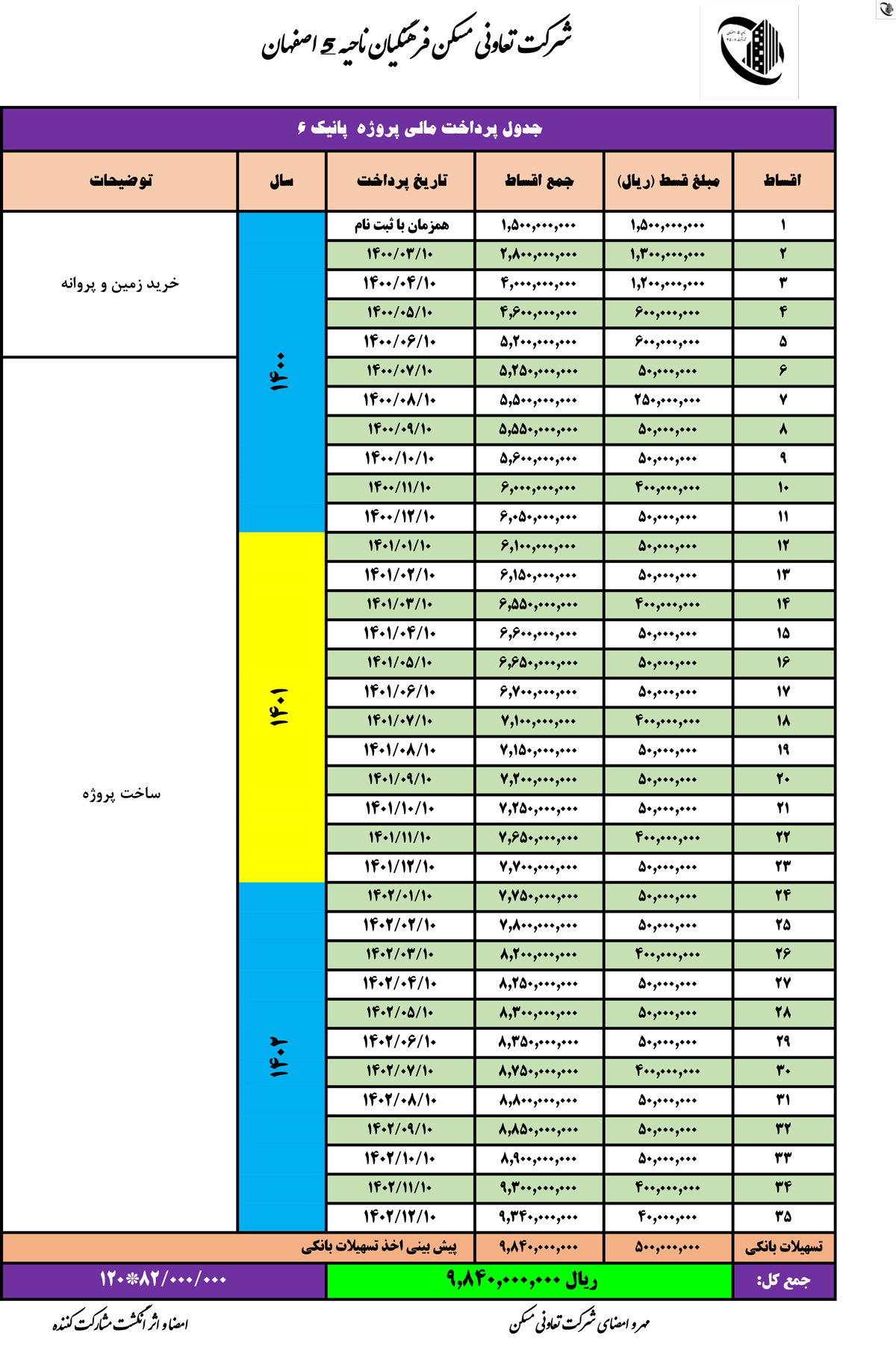 اطلاعیه پروژه جدید پانیک 6 تعاونی مسکن فرهنگیان ناحیه 5 اصفهان (ظرفیت تکمیل)