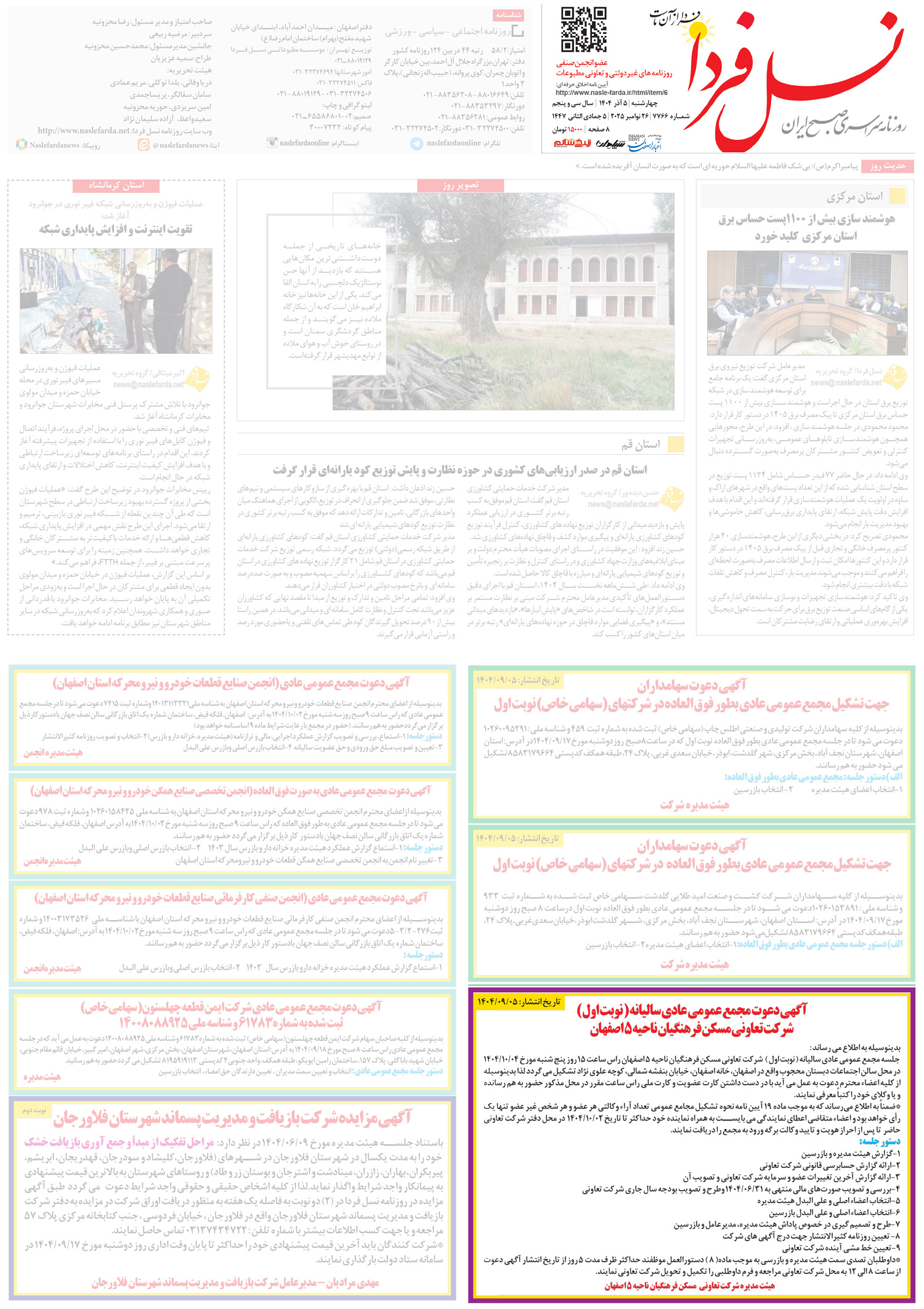 اطلاعیه مجمع عمومی عادی سالیانه نوبت اول