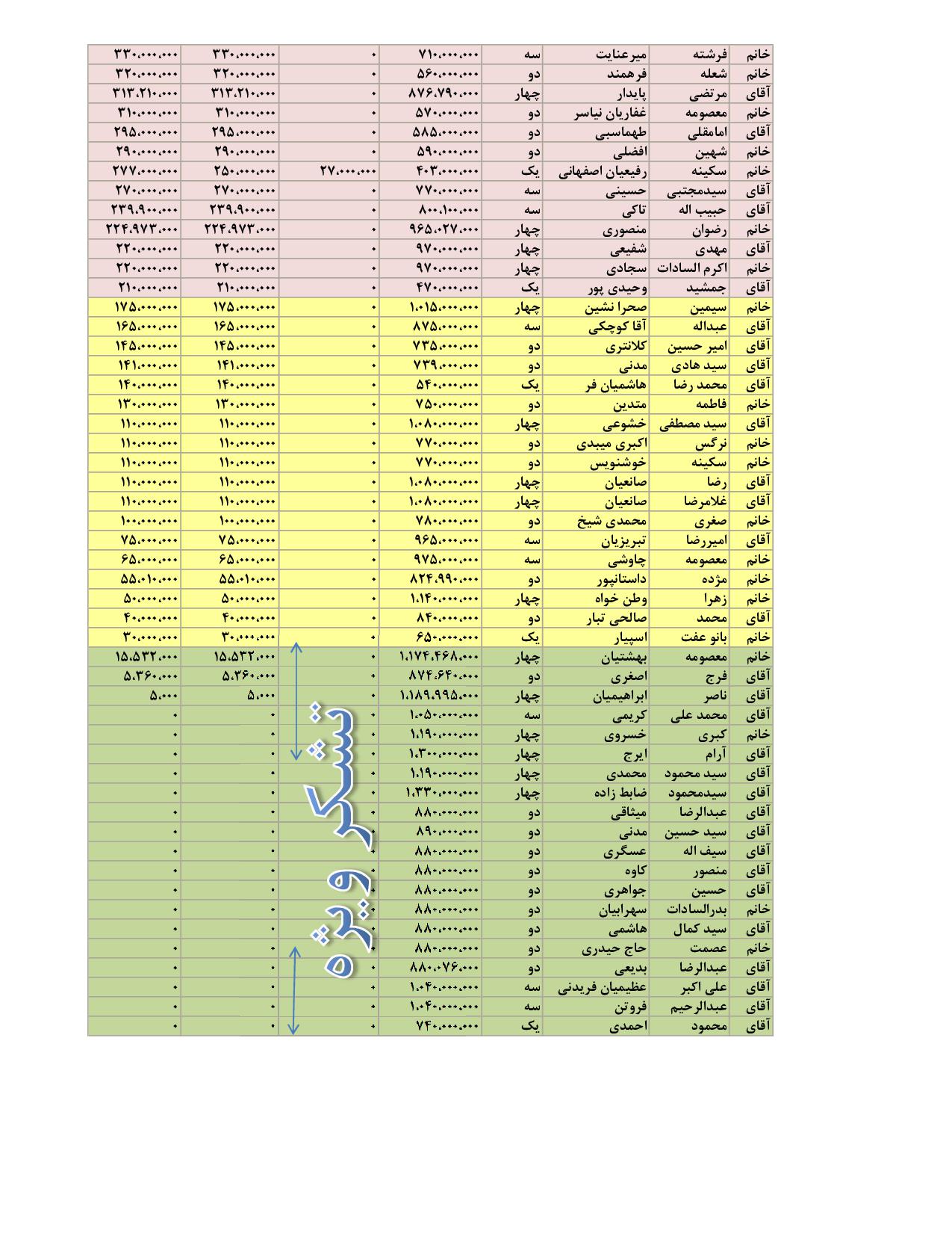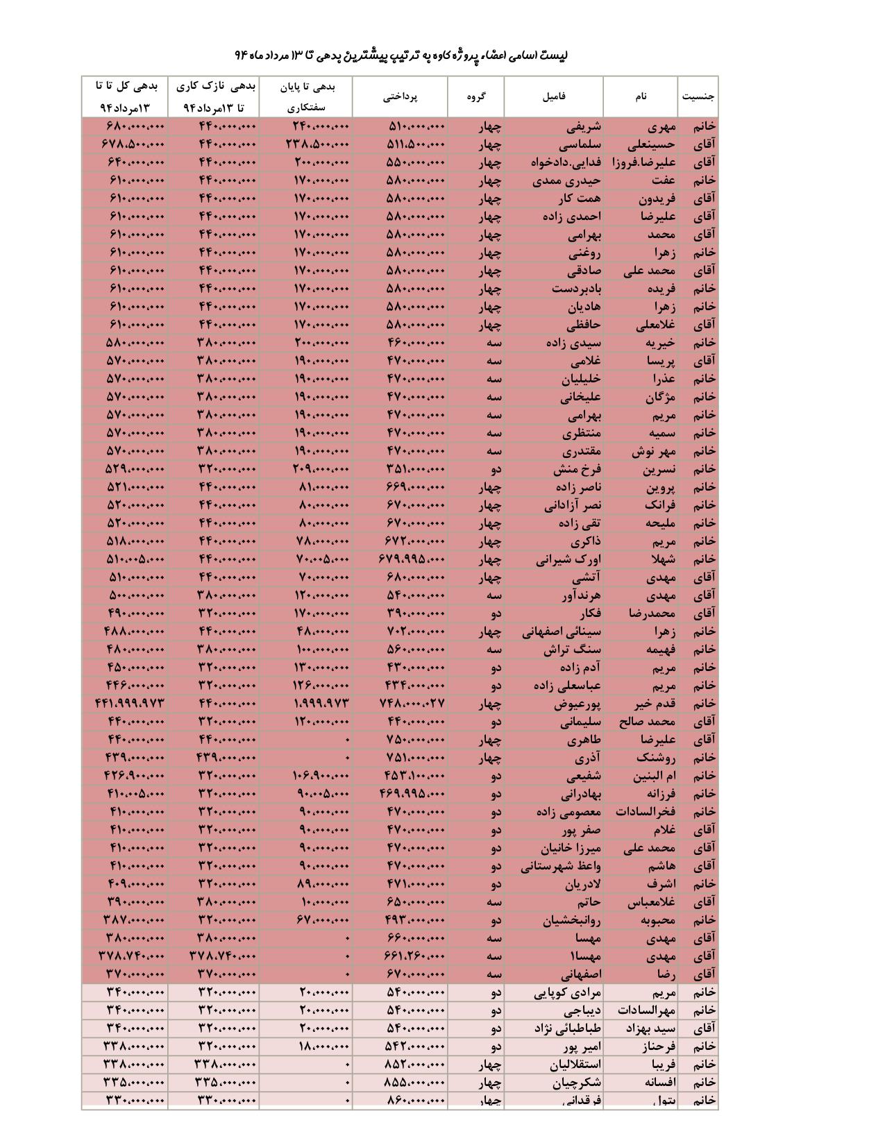 ليست اعضاء پروژه كاوه به ترتيب بيشترين بدهي تا 13 مرداد ماه 94