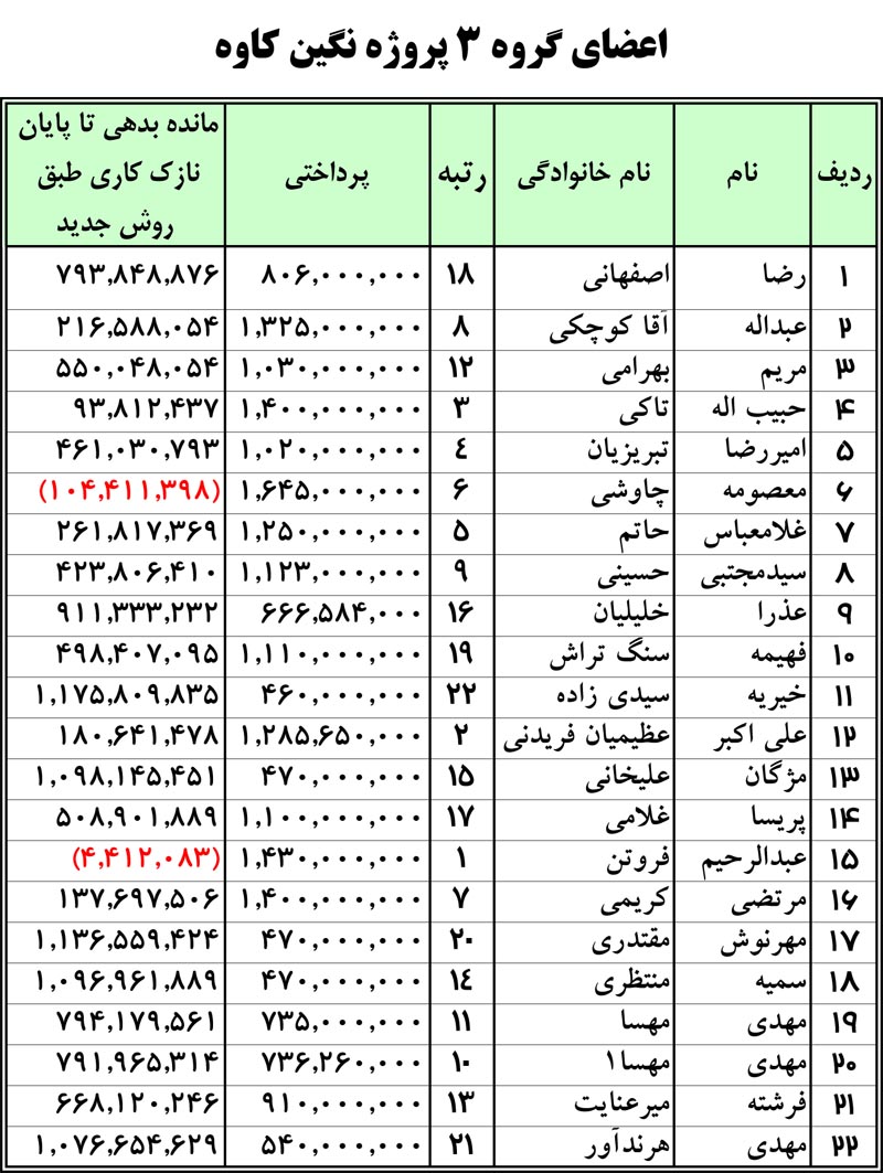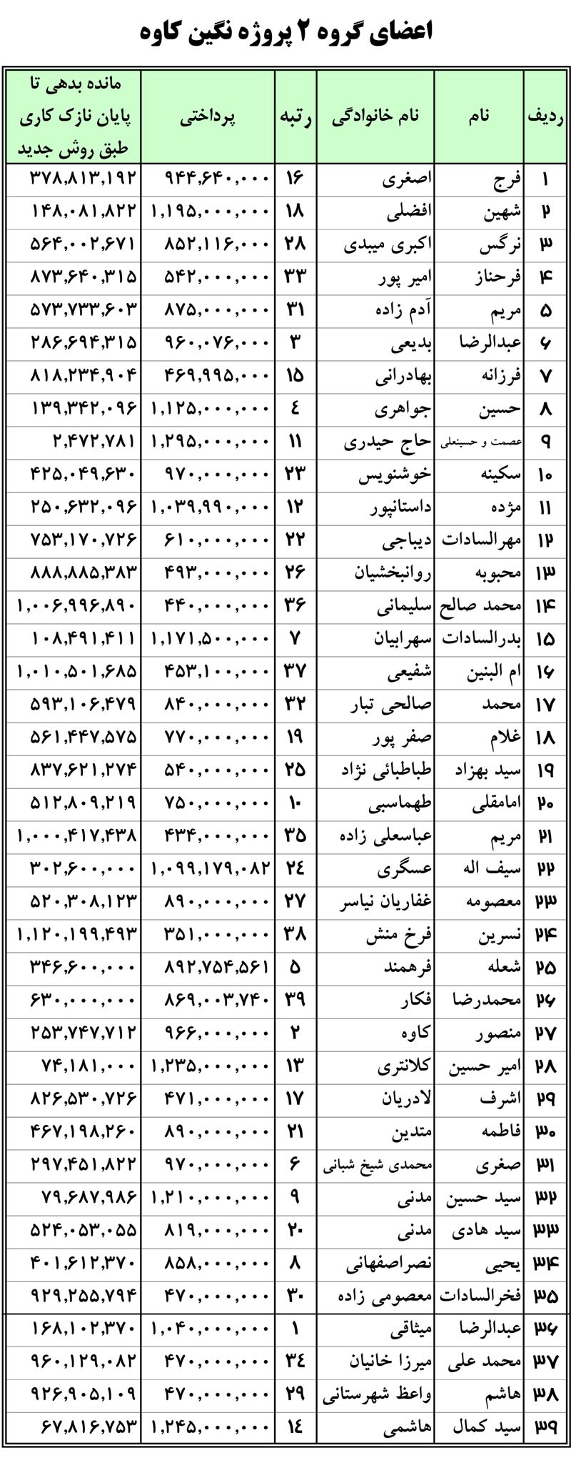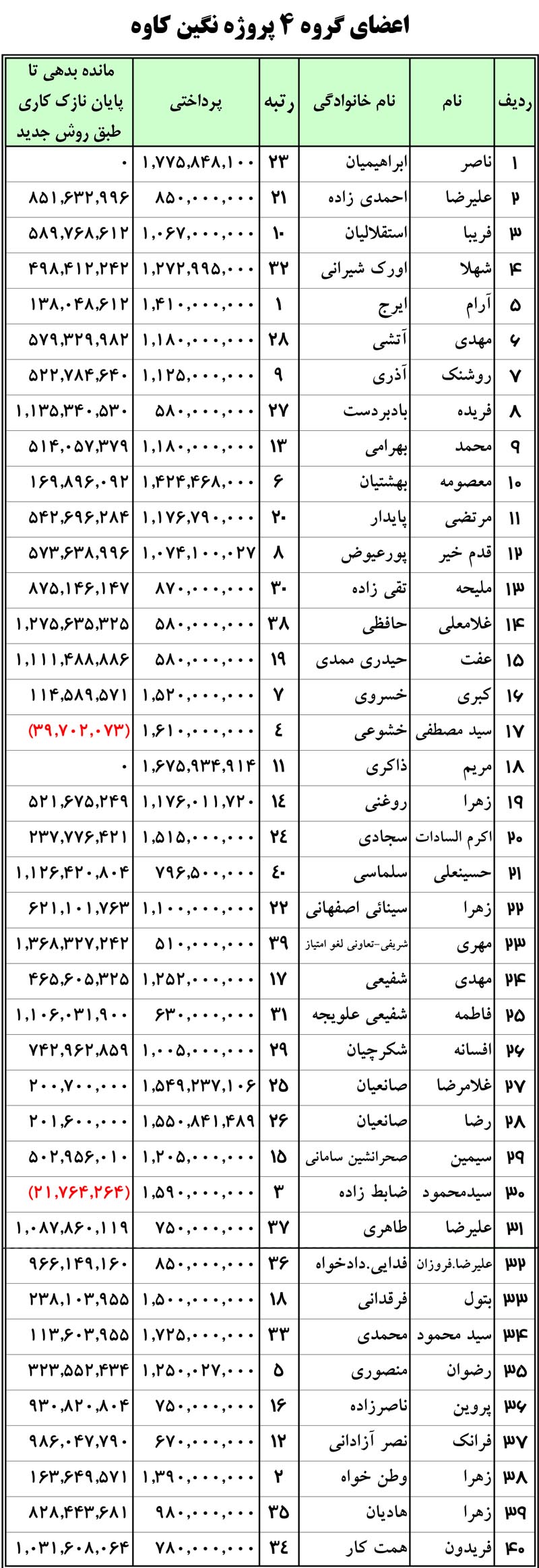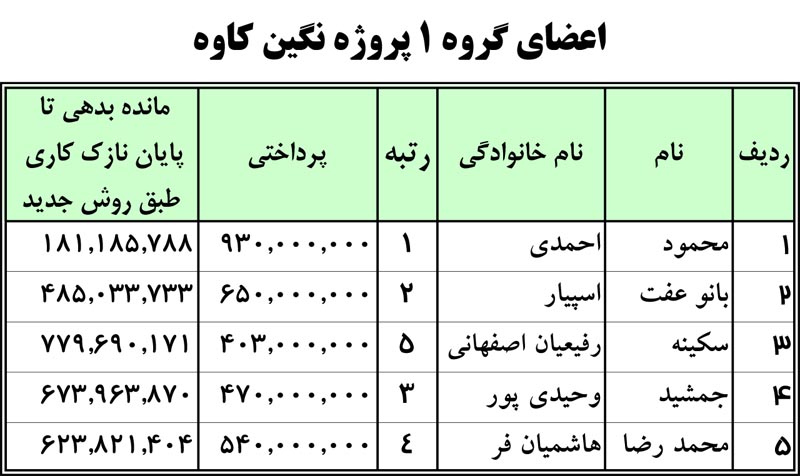جدول بدهی اعضاء پروژه کاوه شهریور ماه 95